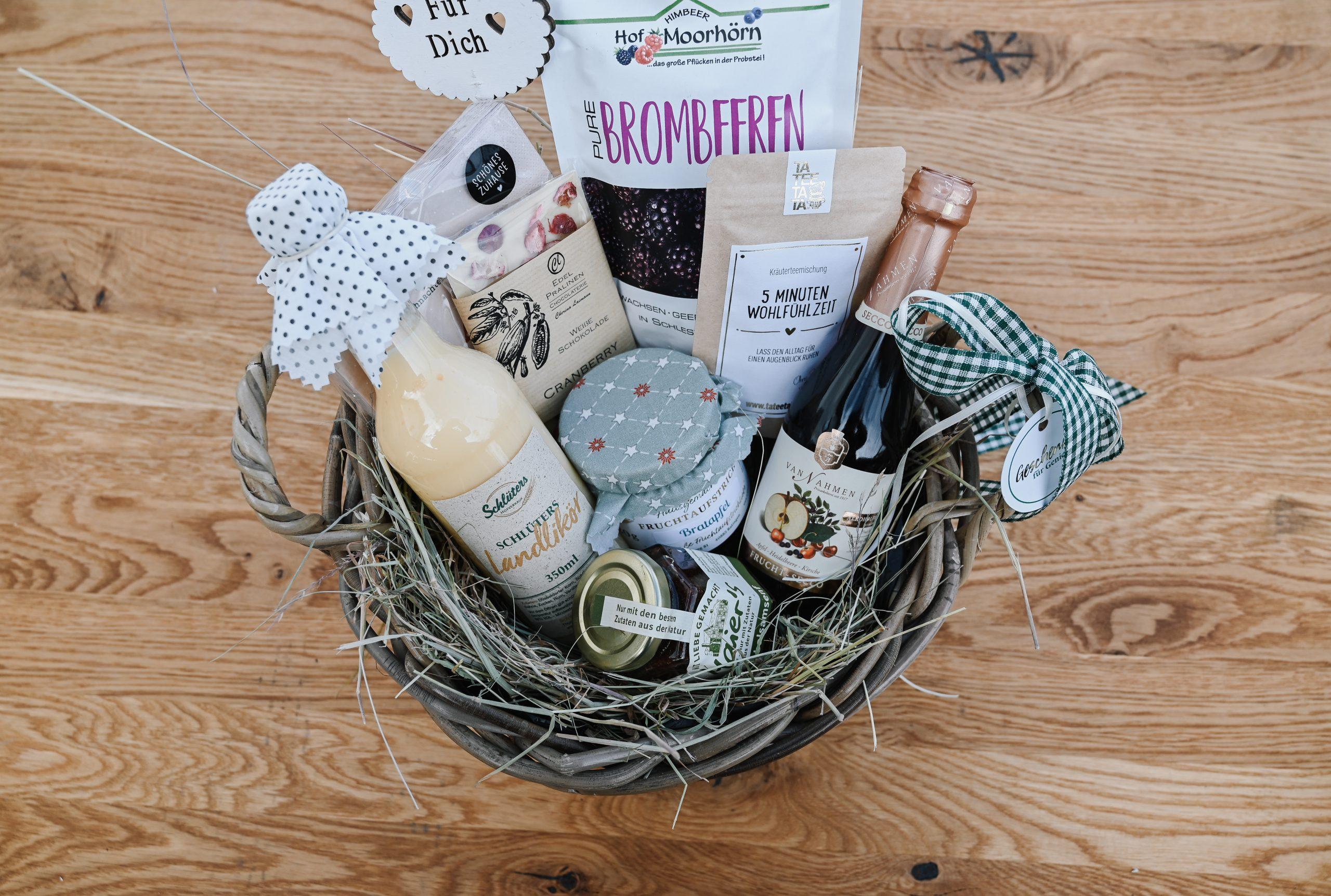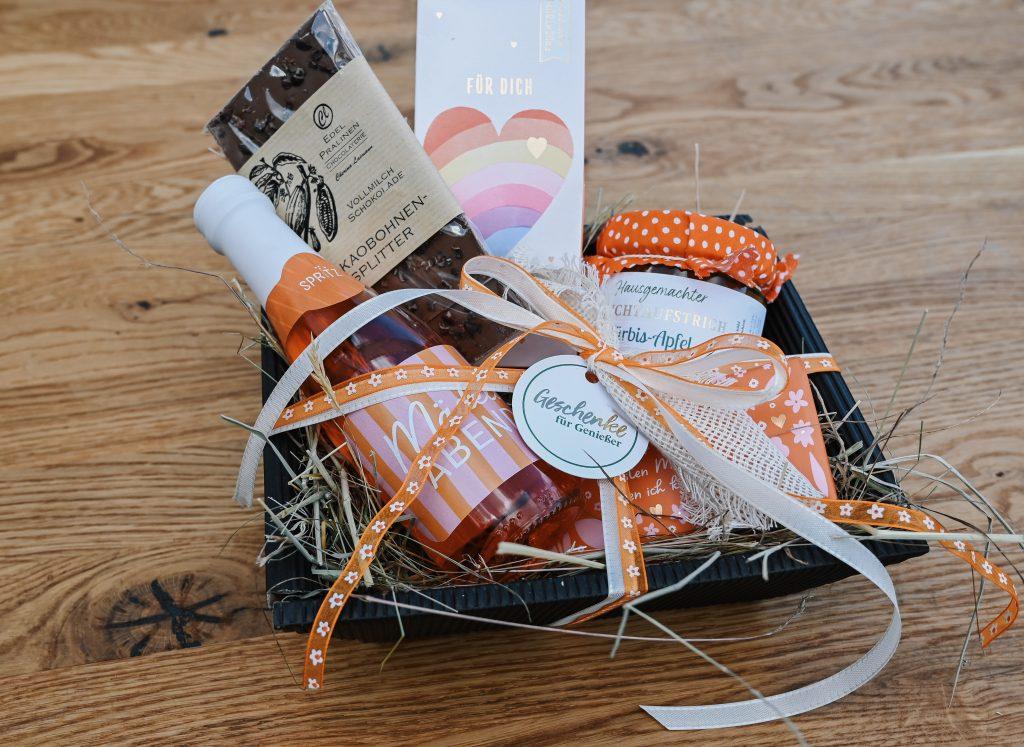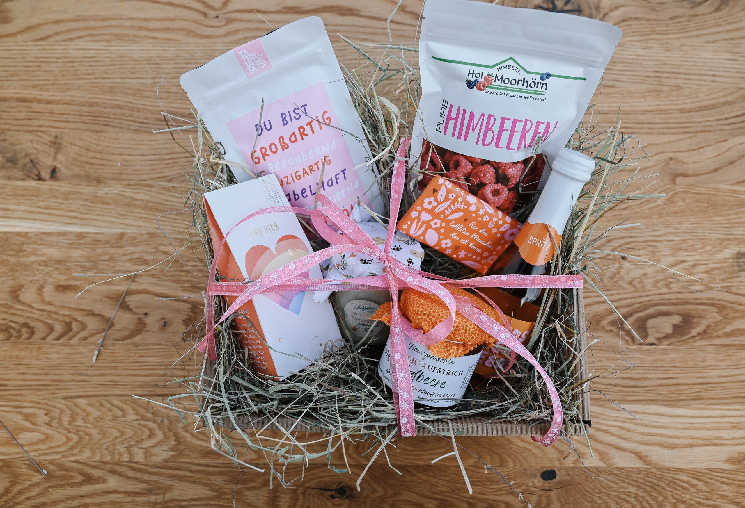 Damit auch du DAS perfekte Geschenk an deine Liebsten überreichen kannst, stehen wir dir jederzeit sehr gerne beratend zur Seite. Melde dich mit deinen individuellen Wünschen und wir zaubern gemeinsam den passenden Präsentkorb. Schreibe uns über das Kontaktformular oder WhatsApp, ruf uns an oder sprich uns persönlich im Hofladen an, wir freuen uns auf Dich!
